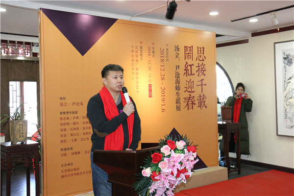 12月28日上午,由南开大学书画艺术与美学研究中心、北京闹红画会共同主办的“思接千载·闹红迎春——汤立、尹沧海师生联展”在北京千年古宣艺术中心开幕。展览旨在围绕“意象造型”与“写意精神”,通过京津两地高校艺术教学与研究的交流对话,继承传统、谋求创新,探讨当代中国书画艺术的教育与发展。