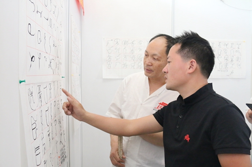 北京宣和书画艺术研究院院委会主任葛棣在现场观看梁清高书法展
