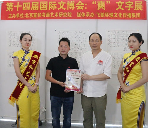 环球文化艺术网讯(杨东亮 冯永军报道)5月29日上午,由文化和旅游部、国家广播电视总局和北京市人民政府共同主办,北京市贸促会承办的第十四届中国北京国际文化创意产业博览会在中国国际展览中心举办。第十四届国际文博会“宣和·至臻”第二届书画家邀请展系列活动,是由北京宣和书画艺术研究院主办,飞驰环球文化传播集团媒体承办,公益在线、师说文化传媒协办,本次展出的是梁清高的书法作品。出席本次画展的嘉宾有:北京宣和书画艺术研究院名誉院长、外交部原驻卢森堡大使马志学,北京宣和书画艺术研究院名誉院长、解放军某高校政委林继福将军,宣和艺术院顾问、中央军委战略规划室原副主任马建国少将,原国务院办公厅行政司党委办主任白雁,原国家人事部办公厅副主任齐国章,总参陆航学院原政委、电视剧《亮剑》片头题写者崔根峰将军,宣和艺术院执行院长单玉志、常务副院长许顺喜,秘书长杨东亮,副秘书长冯永军等嘉宾及媒体到场祝贺。