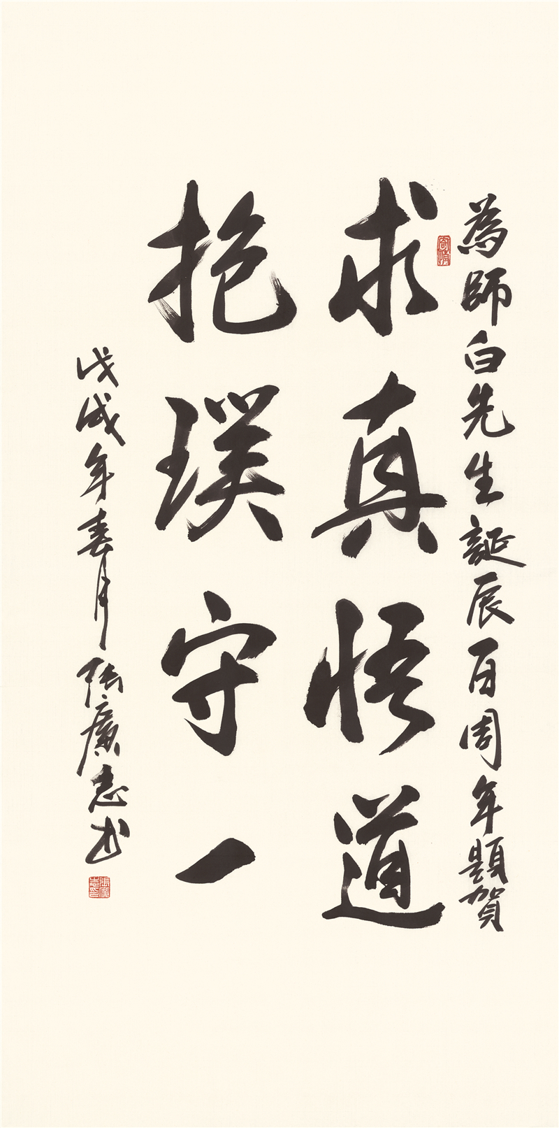 西侧厅主要展出的是娄师白先生部分弟子、再传弟子,北京师白艺术研究会部分会员的丈二书画作品30余幅,以此向师白先生表达尊师之礼、缅怀之情和敬仰之心。